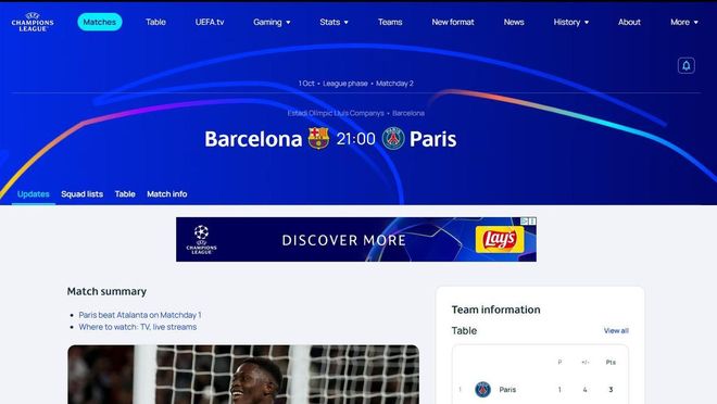 UEFA官方网站于10月1日在蒙特威克体育场(Montwick Stadium)与巴黎圣日耳曼(Paris Saint-Germain)一起标记了欧洲冠军联赛舞台。巴塞罗那俱乐部